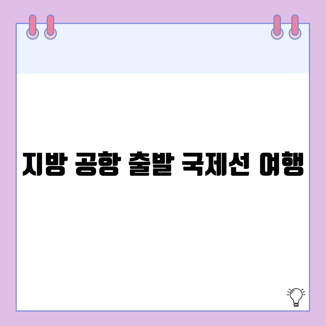 지방 공항을 통한 국제선 여행은 혼잡을 피하고 효율적인 이동이 가능한 실속 있는 선택지입니다. 특히 일본, 대만, 동남아 등 단거리 여행지로 떠날 계획이라면, 지방 공항을 통해 시간과 비용을 모두 절약할 수 있습니다. 다음 해외여행을 계획 중이라면, 가까운 지방 공항에서 출발하는 노선을 확인해보세요!